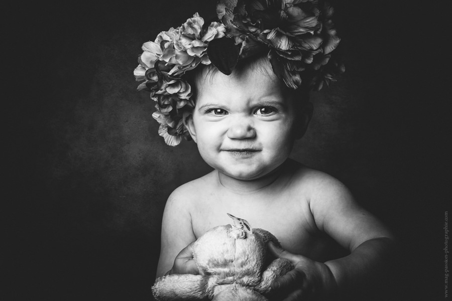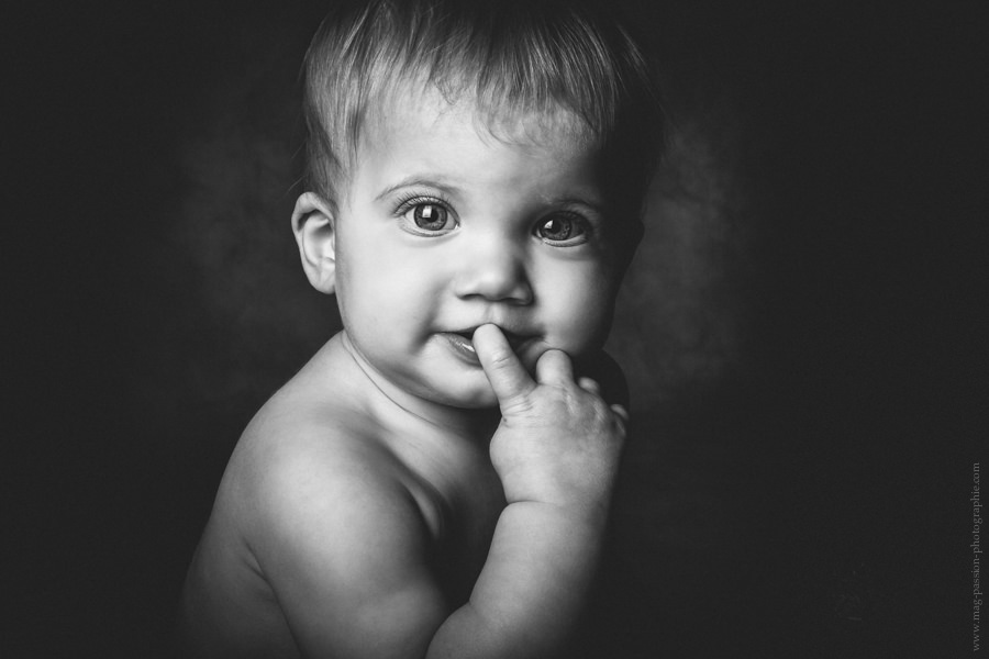 Ma réponse est souvent que en studio , je fais du portrait d’expression. Pas de besoin d’accessoires , pas besoin de différents fonds… Juste besoin de votre enfant au naturel comme vous le connaissez , comme vous le voyez tous les jours avec ses joies et ses peines. Je fais souvent du noirs et blancs en studio car pour moi ils laissent un souvenir intemporel. Je me souviens encore des portraits de mes parents et grands parents réalisés à l’époque , certains trônent encore sur mon bureau.