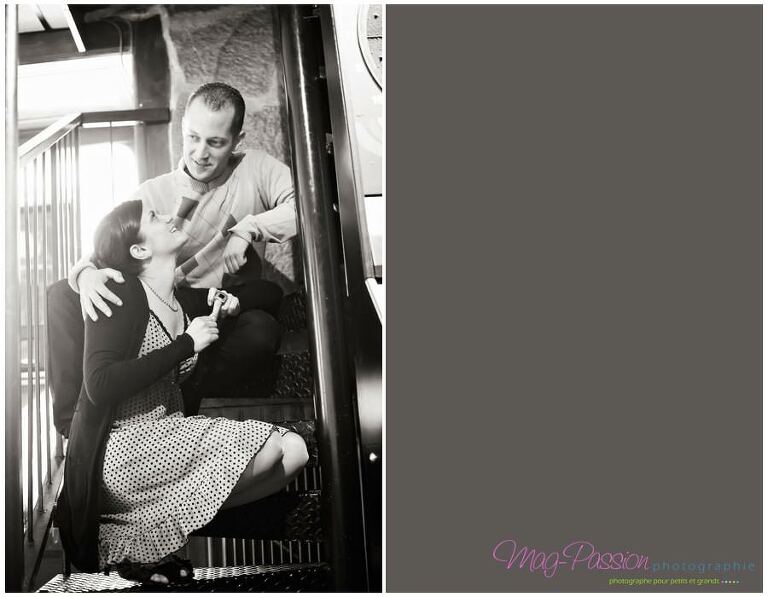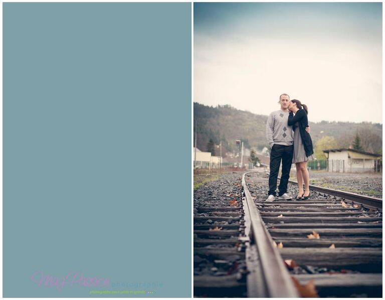 Nicolas et Julia s’uniront dans une clairière le 30 juin, et je serais la personne qui immortalisera cette journée. Pour apprendre à faire connaissance nous avons fait une séance engagement à la gare d’Aurec puis dans un bar. Le printemps n’est pas trop du coté des photographes ces derniers temps et c’est bien dommage. C’est donc lors d’une soirée pluvieuse que nous nous sommes rencontré.